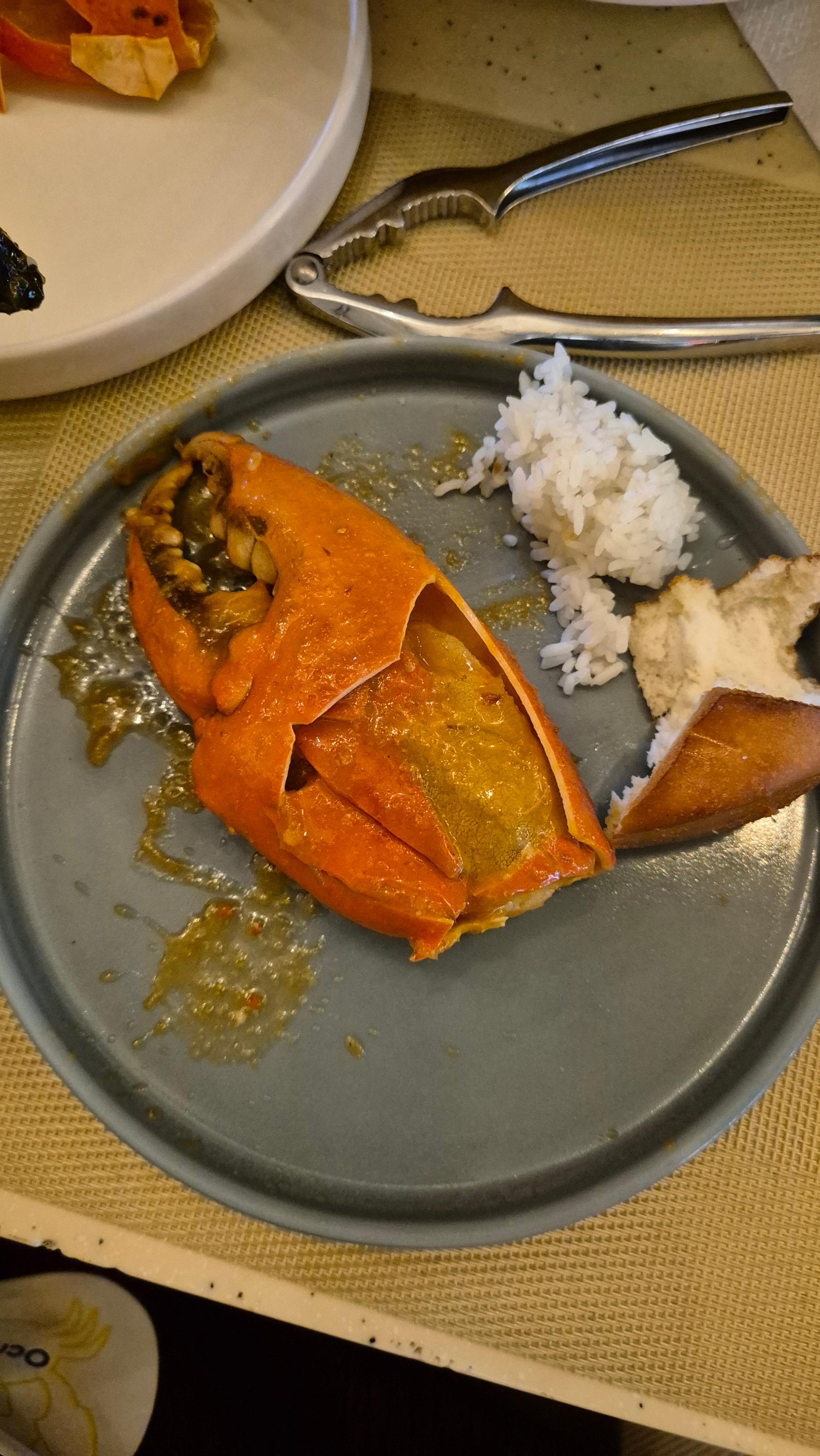 일단 크랩의 수율이 좋은 건지 살이 꽉차게 들어가 있고 육질이 쫀득쫀득하고 부드러워 아주 맛있었습니다. 다만 양념이 아내 입맛에는 살짝 우리나라의 해물찜? 같은 맛이 났다고 합니다. 제 생각에도 단 맛이 살짝 아쉽다는 생각이 들었습니다 그렇지만 꾸덕한 양념소스에 밥과 빵을 찍어먹으니 밥도둑이 따로 없었습니다!